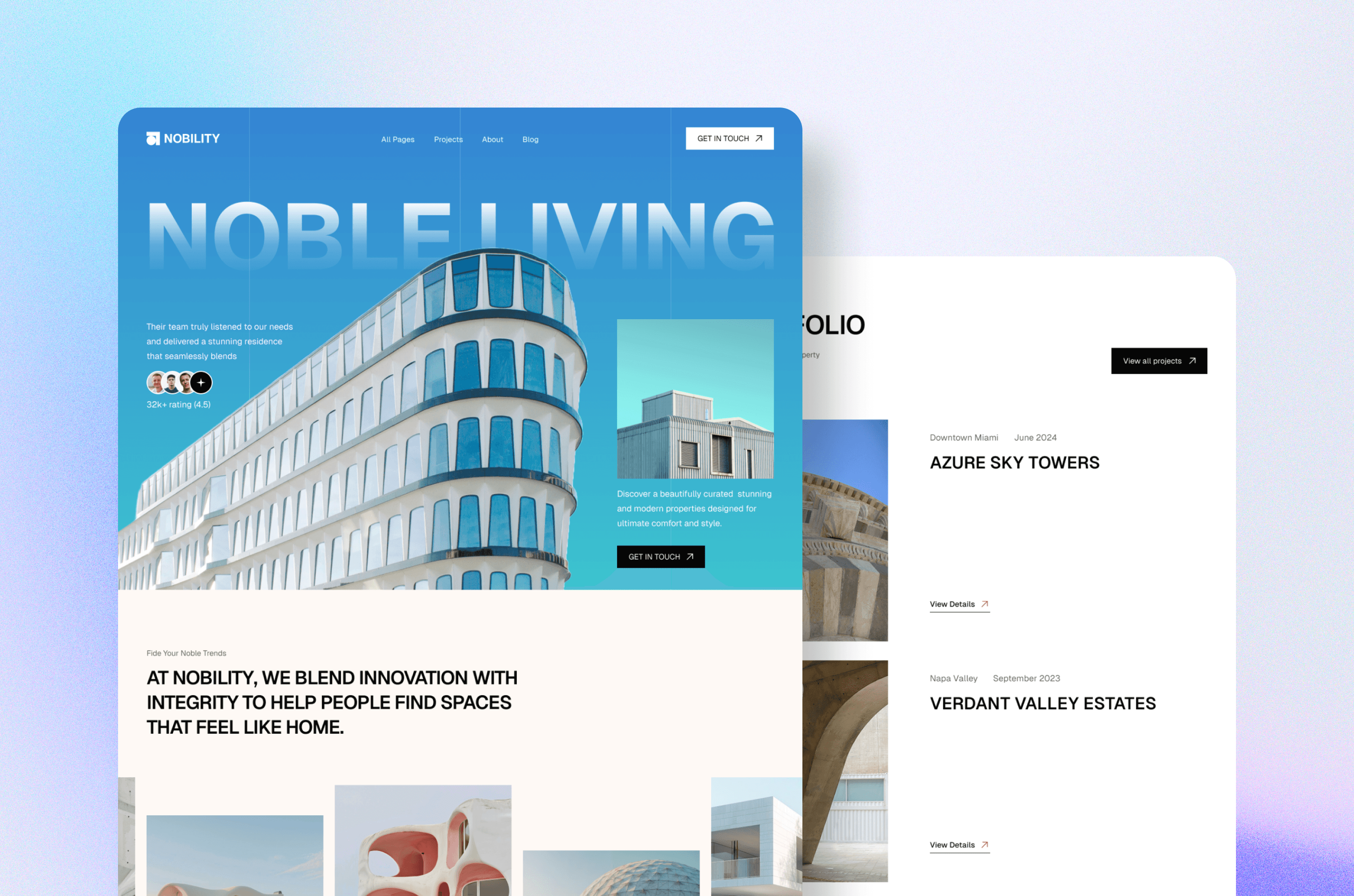 Nobility is a sophisticated and modern real estate template crafted in Framer, tailored for property agencies, realtors, and real estate businesses. With an elegant design, intuitive structure, and seamless navigation, Nobility helps you showcase properties, services, and success stories effectively, making a strong impact on potential clients.
