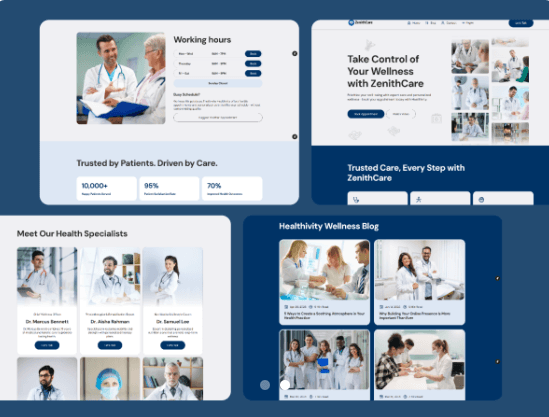 ZenithCare ensures your healthcare brand looks credible and compassionate while making it easy for patients to find information, read reviews, and book appointments.