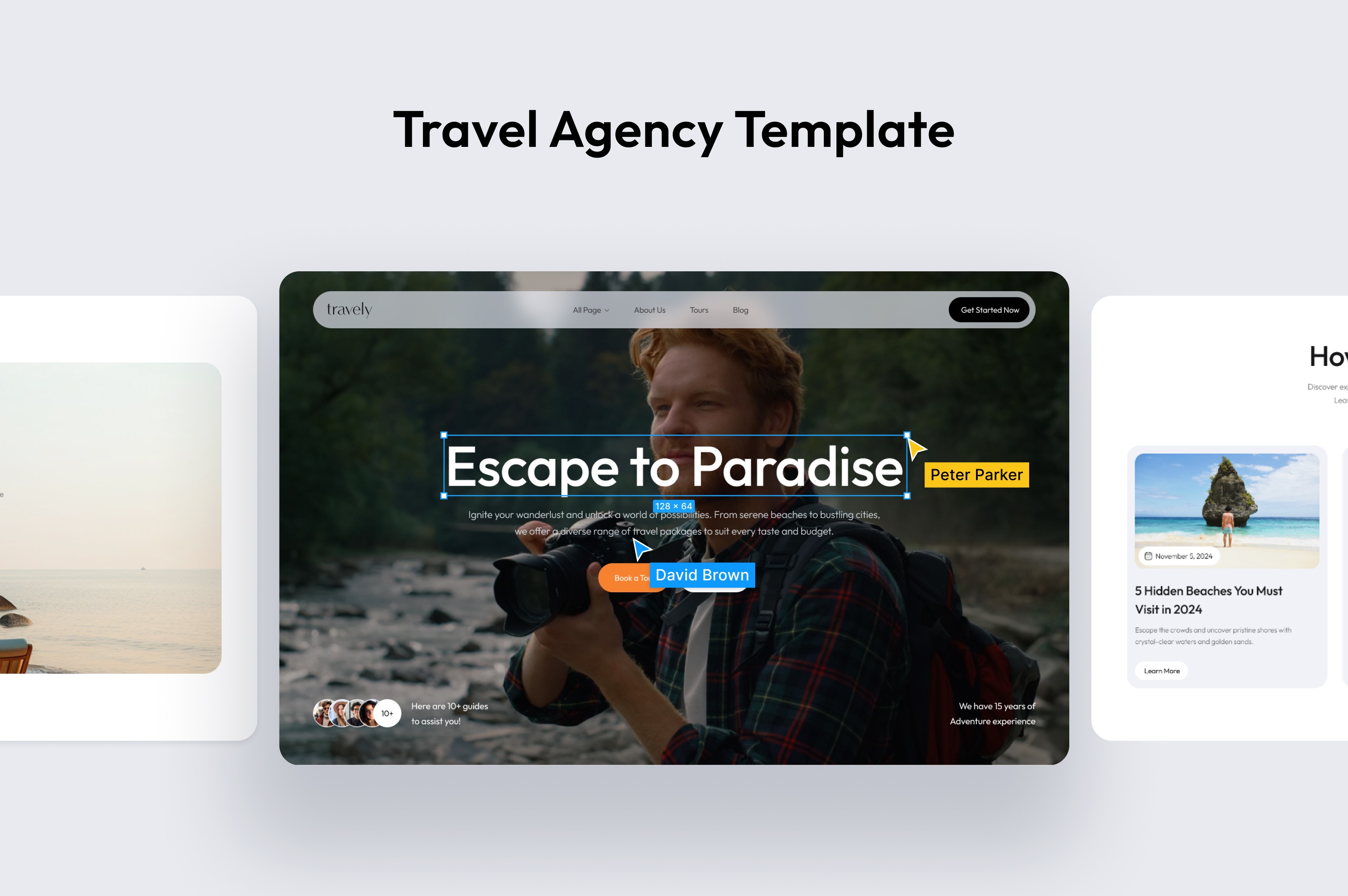 Travely – A modern Framer template designed for travel agencies. Featuring 14 essential pages, including Home, Tours, Booking, and Blog, it’s fully responsive, easily customizable, and SEO-optimized—perfect for showcasing your travel business online!