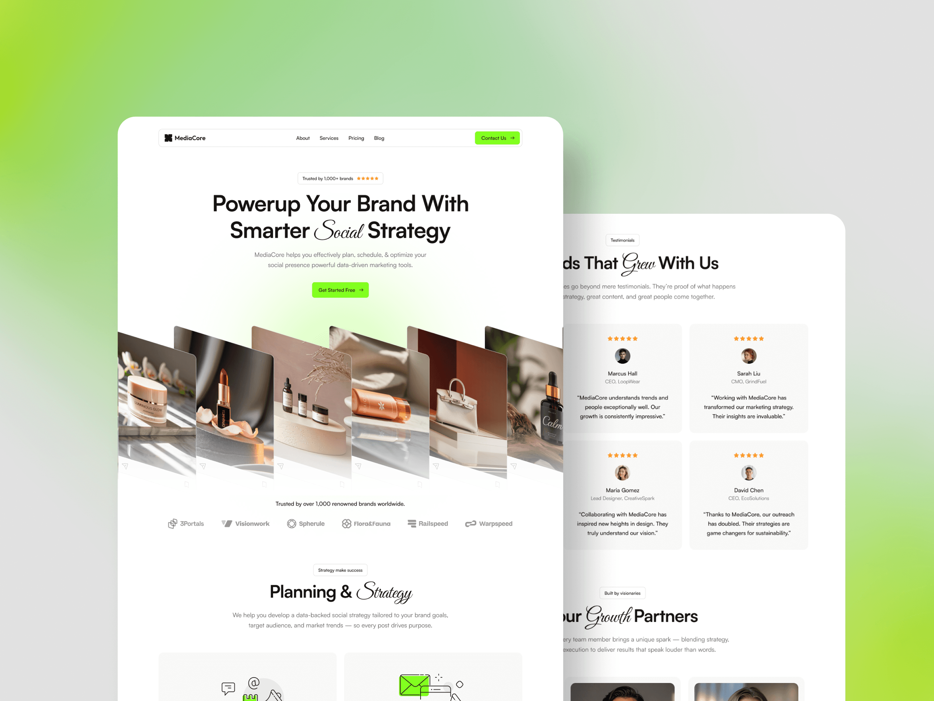 MediaCore is a modern and high-converting website template designed for social media marketing agencies, digital brands, and content-driven businesses. Built with a clean layout and engaging visuals, this template helps brands showcase their services, build trust, and convert visitors into clients.